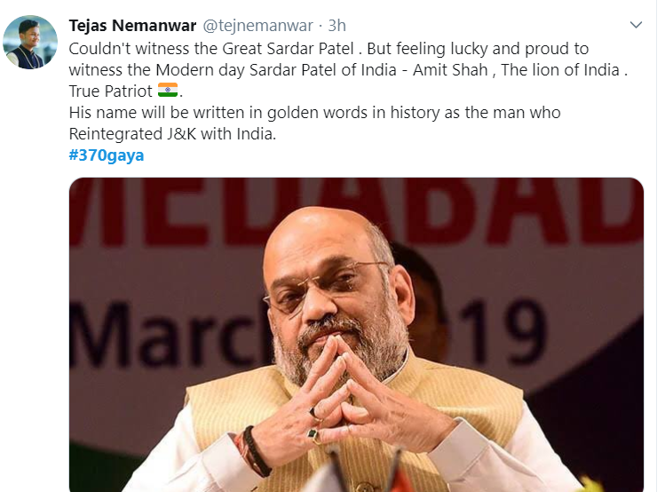 Another Twitter user Tejas tweeted: “Couldn’t witness the Great Sardar Patel, But feeling lucky and proud to witness the Modern day Sardar Patel of India – Amit Shah, The Lion of India, true Patriot.”